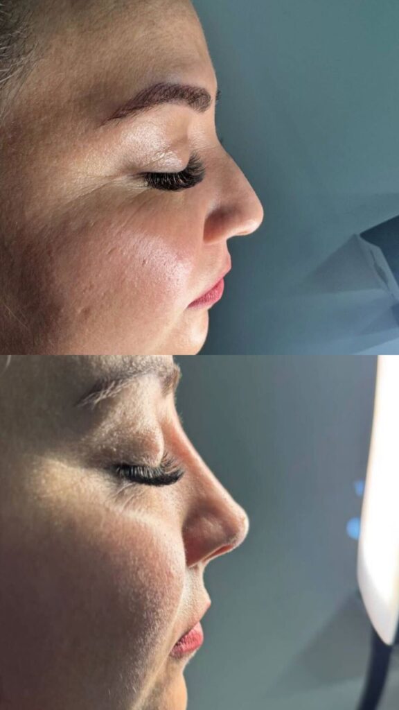 Es un tratamiento estético no quirúrgico que mejora la forma y armonía de la nariz sin necesidad de cirugía.